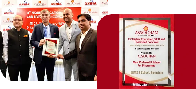 GEMS B SCHOOL received the prestigious ASSOCHAM award for the ‘Most Preferred B School for Placements’ nationally, at the ASSOCHAM 13th Higher Education, Skill and Livelihood Conclave conducted on 25th and 26th Feb 2020 in New Delhi. The award was received from one of India’s tallest Business Leaders, Dr. Niranjan Hiranandani, the Founder and Managing Director of the Hiranandani Group.